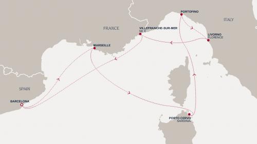 バルセロナ / カンヌ / ジェノバ / ピサ/フィレンツェ/ラスペツィア / チビタベッキア/ローマ / パルマデマヨルカ