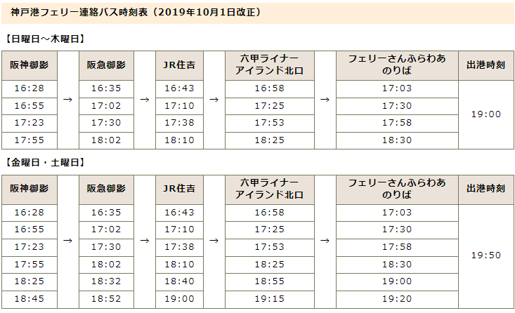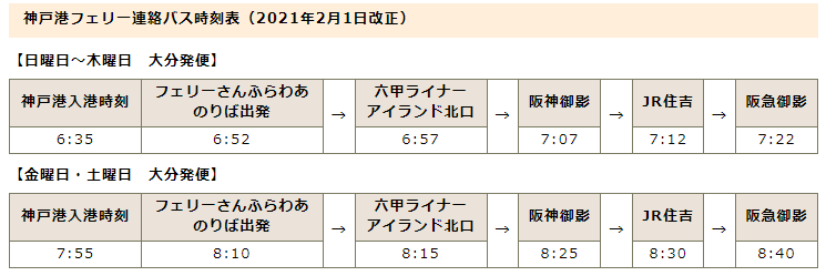 金曜日・土曜日:大分 19:30発 >> 神戸 翌朝 07:55着
