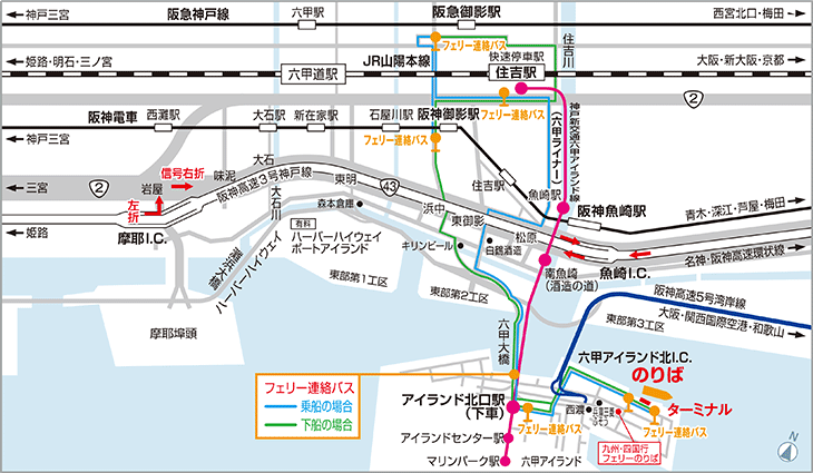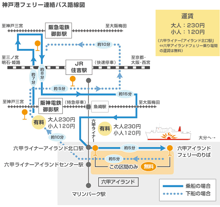 片道大人1,900円のところ、フェリーさんふらわあにご乗船のお客様は無料でご乗車いただけるキャンペーンを実施中!