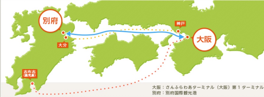 金曜日・土曜日:大阪 19:55発 >> 別府 翌朝 07:45着