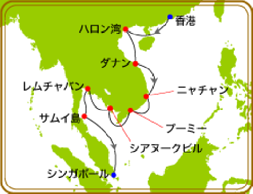 香港 / ハロン湾 / ダナン / ニャチャン / ホーチミン / レムチャバン(バンコク) / サムイ / シンガポール