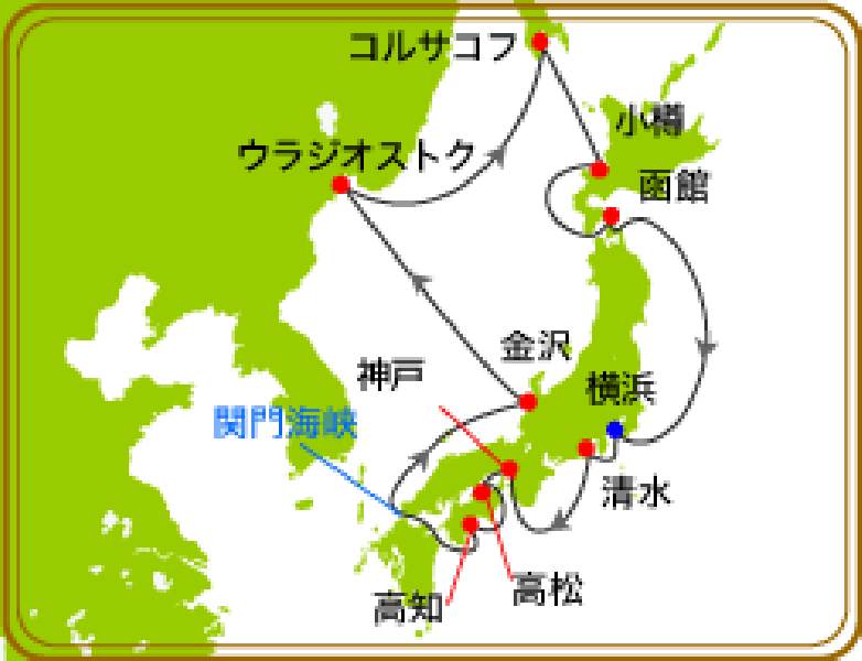 横浜 / 神戸 / 金沢 / ウラジオストク / コルサコフ / 小樽(北海道) / 函館(北海道)