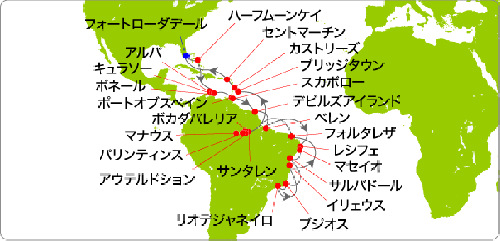 レシフェ / フォートローダデール / ハーフムーンケイ / オランヘスタード / ウィレムスタード / クラレンダイク / ポートオブスペイン / スカボロー / マセイオ / サルバドール / ブジオス / リオデジャネイロ / イリェウス / ブリッジタウン / カストリーズ / フィリップスバーグ / フォートローダデール