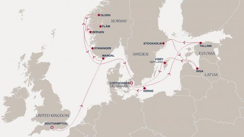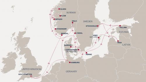 〈主要な寄港地〉 サウサンプトン / マンサニージョ / スタヴァンゲル / オルデン / ベルゲン / コペンハーゲン / タリン / ストックホルム / リガ / ヴィスヴュー/ゴットランド島 / レネ/ボーンホルム島