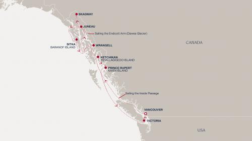 〈主要な寄港地〉 バンクーバー / インサイド・パッセージクルージング / アイシー海峡 / スキャグウェイ / エンディコット湾・ダウス氷河 / ジュノー / ケチカン