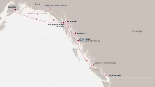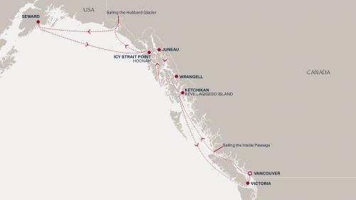 〈主要な寄港地〉 バンクーバー / ケチカン / アイシー海峡 / ハバード・グレーシャークルージング / スワード / ジュノー / ランゲル / ビクトリア