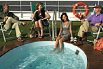 サンデッキ : 4階船の上でゆったりと日光浴がお楽しみいただけます。ラウンジ : 3階前方家族や友人とおしゃべりをしながらリラックスしていただけます。