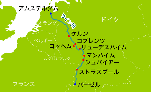 00:00 マンハイム(ドイツ)出港 07:00 リューデスハイム(ドイツ)入港 OPリューデスハイム徒歩観光