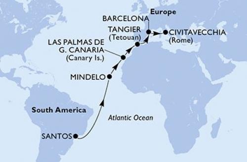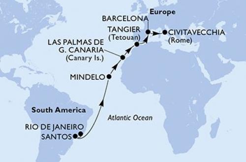 主な寄港地:バルセロナ / マルセイユ / ジェノバ / チビタベッキア/ローマ / メッシーナ(シチリア島) / バレッタなど