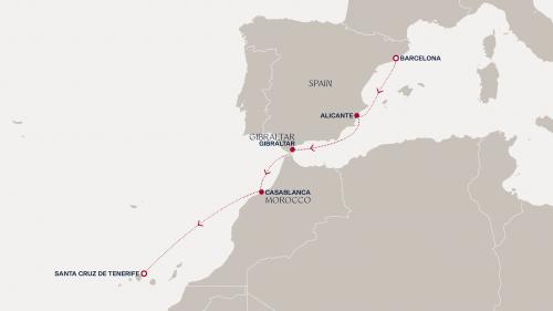 出発地 | バルセロナ発(スペイン) / サンタ・クルス・デ・テネリフェ(スペイン)着 / 地中海 | ||