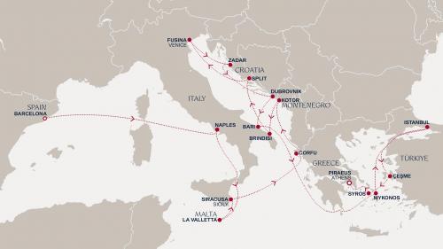 〈主要な寄港地〉 バルセロナ / ナポリ / バレッタ / シラクサ/シチリア島 / コルフ島 / コトル / ブリンディジ / スプリット / ベニス / ザダール / ドブロブニク / バーリ / ミコノス島 / イスタンブール / チェシメ / シロス島 / アテネ/ピレウス