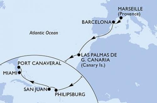 出発地 | マルセイユ発(フランス) / ポート・カナベラル(アメリカ合衆国)着 / 地中海 | ||