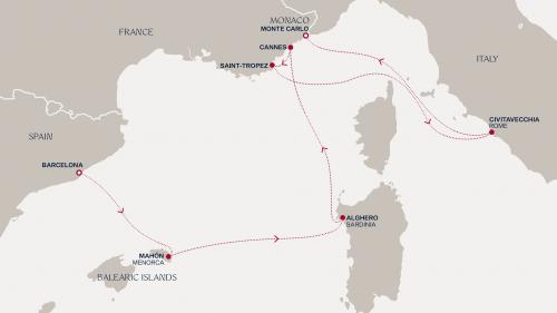 〈主要な寄港地〉 バルセロナ / ナポリ / メッシーナ(シチリア島) / チビタベッキア/ローマ / ポルトフィーノ / ラスペツィア / ヴィルフランシュ/ニース
