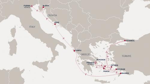 〈主要な寄港地〉 アテネ/ピレウス / パトモス島 / イスタンブール / ボドルム / ミコノス島 / パロス島 / ロードス島 / コルフ島 / フヴァル / リエカ / ベニス