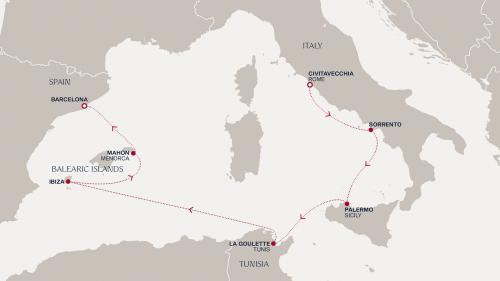 主な寄港地:バルセロナ / マルセイユ / ジェノバ / ナポリ / メッシーナ(シチリア島) / バレッタなど