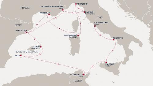 〈主要な寄港地〉 チビタベッキア/ローマ / ソレント / パレルモ / ラグレット / イビサ / マホン / バルセロナ / マルセイユ / ポルト・チェルヴォ / ポルトフィーノ / リボルノ/フィレンツェ / ヴィルフランシュ=シュル=メール