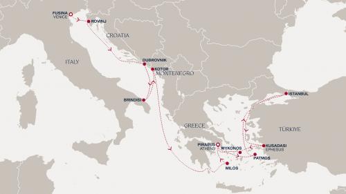 〈主要な寄港地〉 ベニス / ドブロブニク / ブリンディジ / コトル / ミロス島 / アテネ/ピレウス / パトモス島 / イスタンブール / クサダシ / ミコノス島