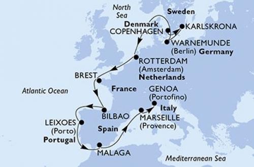 〈主要な寄港地〉 コペンハーゲン / ヴァルネミュンデ / ロッテルダム / ブレスト / ビルバオ / レイショエス港 / マラガ / マルセイユ / ジェノバ