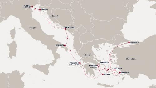 〈主要な寄港地〉 ベニス / ドブロブニク / ブリンディジ / フィスカルド/ケファロニア島 / ミロス島 / アテネ/ピレウス / パトモス島 / イスタンブール / ボドルム / ミコノス島