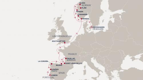 〈主要な寄港地〉 リスボン / アルメリア / ラコルーニャ / ビルバオ / サン・ジャン・ド・リュズ / サウサンプトン / マンサニージョ / スタヴァンゲル / オルデン / ベルゲン / コペンハーゲン