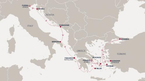 〈主要な寄港地〉 ベニス / ドブロブニク / ブリンディジ / フィスカルド/ケファロニア島 / ミロス島 / アテネ/ピレウス / パトモス島 / イスタンブール / クサダシ / ミコノス島