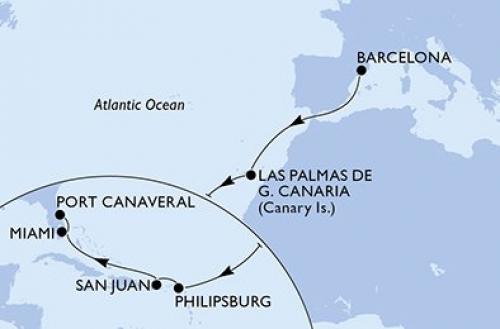 〈主要な寄港地〉 バルセロナ / マラガ / カディス / カサブランカ / アガディール / フィリップスバーグ / バセテール / トルトラ / ラ・ロマーナ
