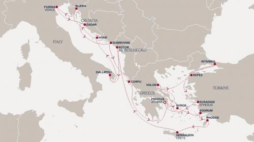 〈主要な寄港地〉 アテネ/ピレウス / シロス島 / ボドルム / ロードス島 / イラクリオン / コトル / ガルベストン / フヴァル / リエカ / ベニス / ザダール / ドブロブニク / コルフ島 / ヴォロス / イスタンブール / ケペス / クサダシ