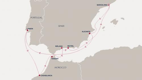 〈主要な寄港地〉 バルセロナ / アリカンテ / ジブラルタル海峡 / カディス / カサブランカ / ラスパルマス / フンシャル(マディラ島) / ポンタデルガーダ(アソーレス諸島) / ボストン / ニューヨーク / マイアミ