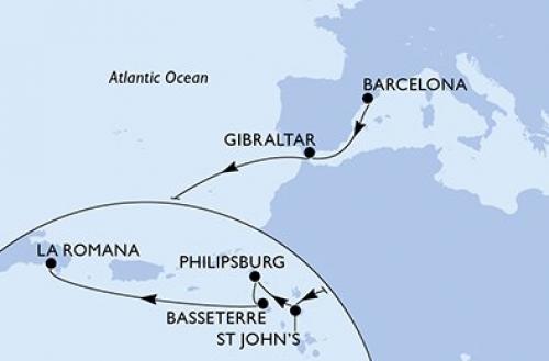 〈主要な寄港地〉 バルセロナ / ジブラルタル海峡 / セントジョンズ / フィリップスバーグ / バセテール / ラ・ロマーナ / カタリナ島 / ブリッジタウン