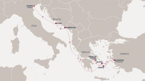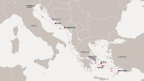 〈主要な寄港地〉 バルセロナ / ヴィルフランシュ=シュル=メール / リボルノ/フィレンツェ / チビタベッキア/ローマ / サレルノ / メッシーナ(シチリア島) / コルフ島 / コトル / スプリット / ラヴェンナ