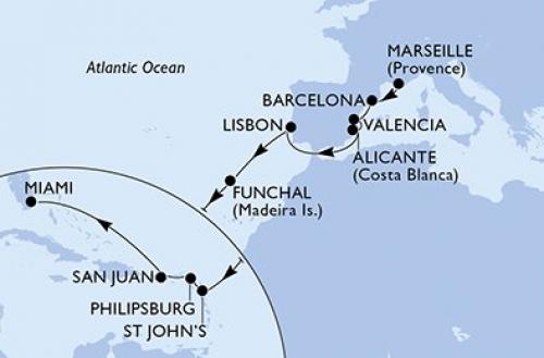 〈主要な寄港地〉 マルセイユ / バルセロナ / バレンシア / カサブランカ / ブリッジタウン / セント・ジョージズ / フィリップスバーグ / サンファン / マイアミ
