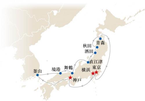 神戸 / 横浜 / 鹿児島 / 宮古島 / 香港 / ハロン湾 / ダナン / ホーチミン / シアヌークビル / シンガポール / バンダルスリブガワン / コタキナバル(ボルネオ島) / 那覇 / 横浜 / 神戸