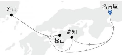 名古屋(愛知) / 小松島(徳島) / 松山 / 釜山