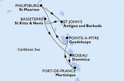 〈主要な寄港地〉 フォール=ド=フランス / ポワンタピートル / ロードタウン / ラ・ロマーナ / サマナ / ヴァージン・ゴルダ島 / バセテール / フィリップスバーグ / カタリナ島 / ブリッジタウン
