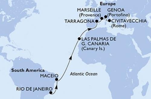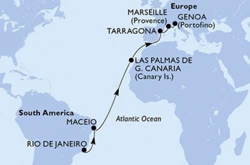 〈主要な寄港地〉 リオデジャネイロ / マセイオ / ラスパルマス / タラゴナ / マルセイユ / ジェノバ / チビタベッキア/ローマ / パレルモ / イビサ / バレンシア