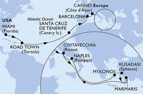 〈主要な寄港地〉 マイアミ / ロードタウン / サンタ・クルス・デ・テネリフェ / バルセロナ / カンヌ / チビタベッキア/ローマ / ミコノス島 / クサダシ / マルマリス / ナポリ