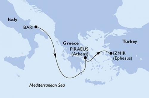 秋の最強タイムセール価格!10/31まで延長! 【テレビ紹介で話題の船会社!】 【オンライン予約可】MSCシンフォニア号で行く エーゲ海クルーズ 7泊8日 -バーリ発(イタリア)バーリ着(イタリア)-