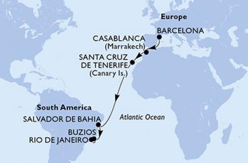 〈主要な寄港地〉 バルセロナ / フンシャル(マディラ島) / ラスパルマス / サンタ・クルス・デ・テネリフェ / サルバドール / リオデジャネイロ / サントス(サンパウロ)