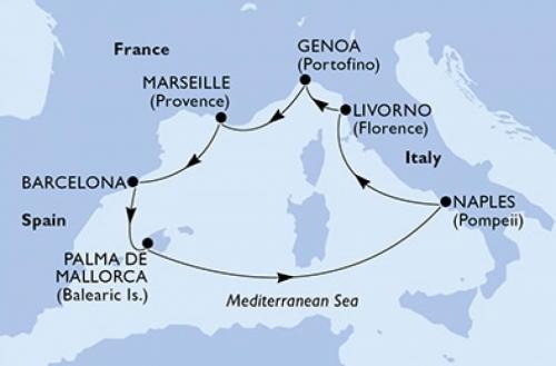 【総額1億円 スーパー還元お年玉セール】 【ベストワン航空券付きツアー:165,000円~】MSCシーサイドでいく 西地中海 イタリア・スペイン・フランス3カ国周遊クルーズ11日間 -東京(成田・羽田)発着-