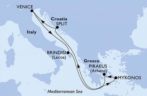 ベニス / ブリンディジ / ミコノス島 / アテネ/ピレウス / スプリット