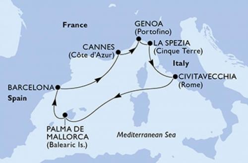 バルセロナ / マルセイユ / ジェノバ / チビタベッキア/ローマ / メッシーナ(シチリア島) / バレッタ