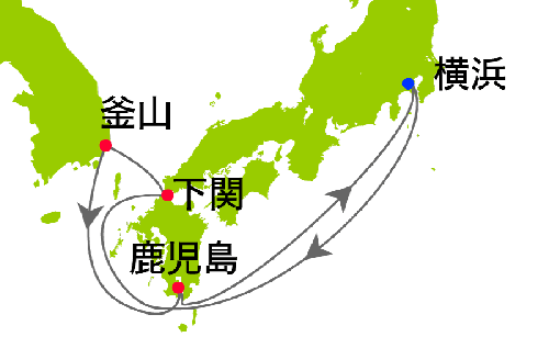 横浜 / 鹿児島 / 宮古島 / 香港 / ハロン湾 / ダナン / ホーチミン / シアヌークビル / シンガポール / バンダルスリブガワン / コタキナバル(ボルネオ島) / 那覇 / 横浜