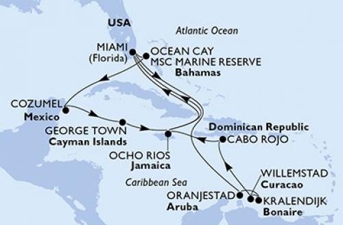 マイアミ / サンファン / フィリップスバーグ / バセテール / セントジョンズ / シャーロットアマリー/セントトーマス島 / アンバーコーブ / ナッソー / オーシャンケイのMSC海洋保護区