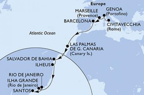 チビタベッキア/ローマ / ジェノバ / マルセイユ / タラゴナ / バレンシア / ラスパルマス / レシフェ / ブジオス / リオデジャネイロ