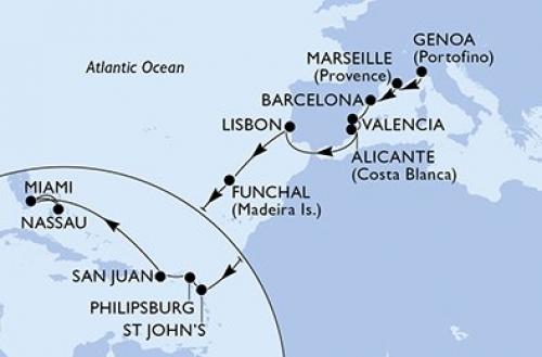 バルセロナ / バレンシア / カサブランカ / ブリッジタウン / セント・ジョージズ / フィリップスバーグ / サンファン / マイアミ / オーシャンケイのMSC海洋保護区 / アンバーコーブ