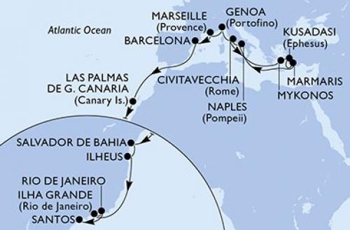 【総額1億円 スーパー還元お年玉セール】 【オンライン予約可】MSCディヴィーナ号で行く 地中海クルーズ 25泊26日 -チビタベッキア/ローマ発(イタリア)サントス着(ブラジル)-