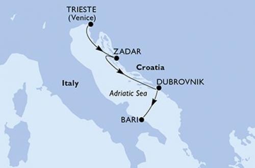 秋の最強タイムセール中!(10/1~14まで) 【テレビ紹介で話題の船会社!】 【オンライン予約可】MSCファンタジア号で行く 地中海クルーズ 3泊4日 -トリエステ/ベニス発(イタリア)バーリ着(イタリア)-