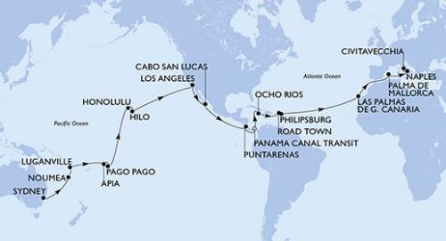 【あと日で終了!総額1億円 スーパー還元お年玉セール】 【オンライン予約可】MSCマニフィカ号で行く パナマ運河クルーズ 50泊51日 -シドニー発(オーストラリア)チビタベッキア/ローマ着(イタリア)- MSCマニフィカが生まれ変わります!5%OFFスペシャル割引実施中!
