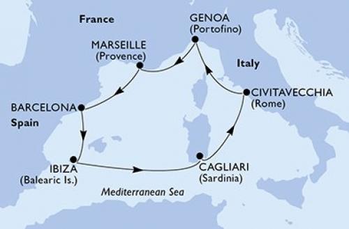 バルセロナ / イビサ / カリアリ(サルディニア島) / チビタベッキア/ローマ / ジェノバ / マルセイユ