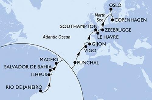 リオデジャネイロ / イリェウス / サルバドール / マセイオ / フンシャル(マディラ島) / ビーゴ / ヒホン / サウサンプトン / ルアーブル / ゼーブルッヘ(ブリュッセル) / コペンハーゲン / オスロ